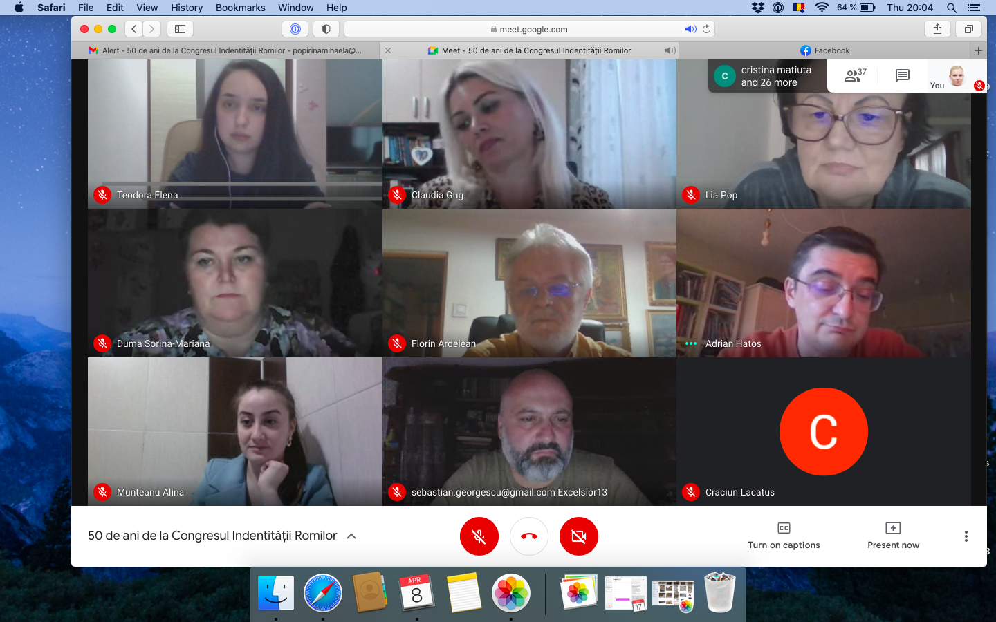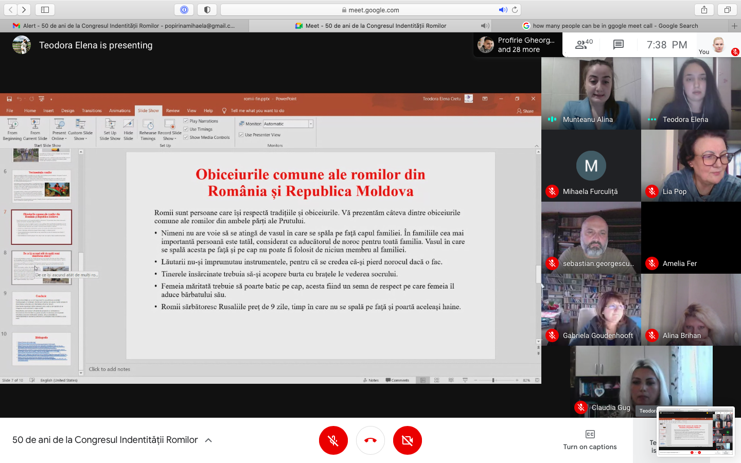 Cu ocazia Jubileului Romilor am organizat un webinar cu participarea a peste 60 de persoane pe platforma Google Meet. Au luat cuvântul Radu Marian, deputat în parlamentul Republicii Moldova, prof. univ. dr. Adrian Hatos, senator în Parlamentul României, drd. Crăciun Ioan Lăcătuș cercetător în cadrul Institutului pentru Studierea Problemelor Minorităților Naționale din Cluj Napoca; conf. univ. dr. Gabriela Goudenhooft, directorul Departamentului de Științe Politice și Științele Comunicării și Gabriel Moisa, decanul Facultății de Istorie, Relații Internaționale, Științe Politice și Științele Comunicării.